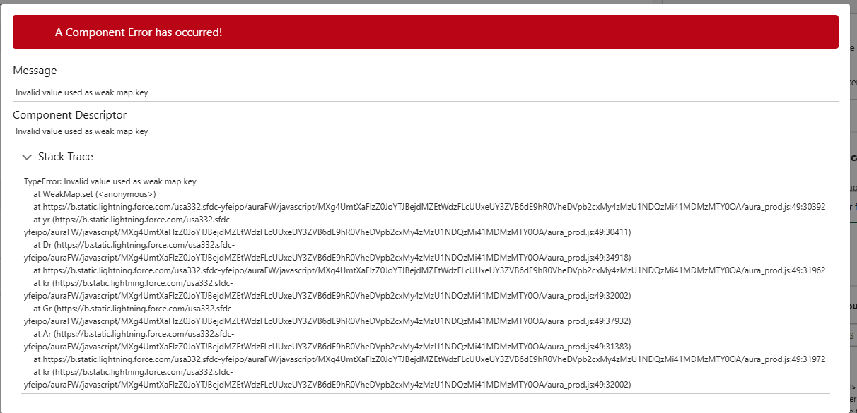 We have been made aware of a component error that is impacting some but not all Users of Elements. The error appears similar to the screenshot below. We've reported this issue to Salesforce and they have escalated this as a high priority internally. We will continue to update this Status article as we receive updates from Salesforce.